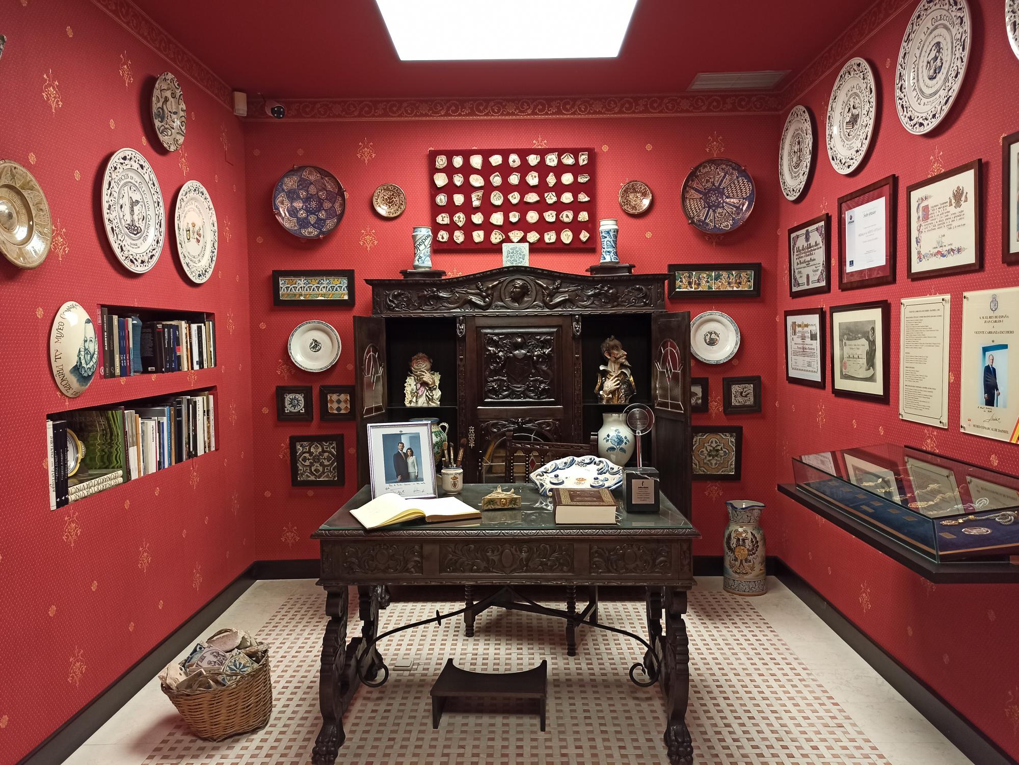 También en la planta baja, podemos disfrutar del Gabinete del Coleccionista, una sala decorada y ambientada a la moda del siglo XIX, con abundante número de piezas cerámicas, nos permite adentrarnos en la piel del coleccionista, un espacio donde se encerrará a estudiar, investigar y restaurar las piezas que forman parte de su colección.